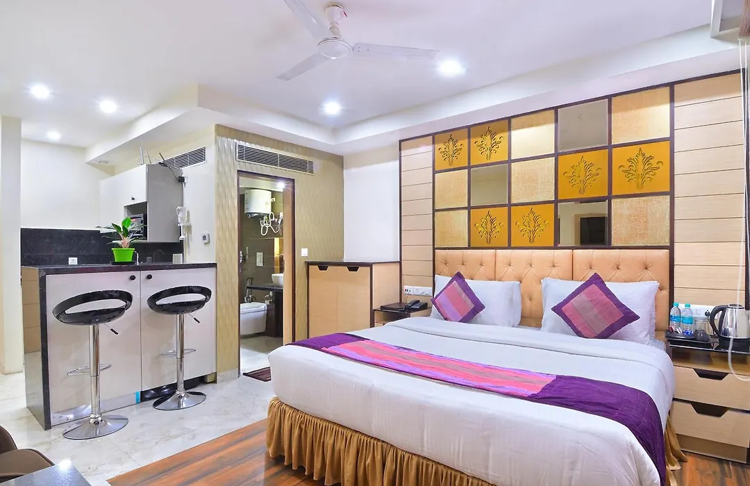 The rooms comprise a balcony and a kitchenette complete with air conditioning, as well as a flat-screen TV with satellite channels. They are appointed with a writing desk, and also feature tea and coffee making equipment. The bathroom is equipped with a separate toilet and a shower, along with hairdryers and bath sheets. Guests can enjoy views of the city from Hari Homes - Just A Min Walk From New Delhi Railway hotel.